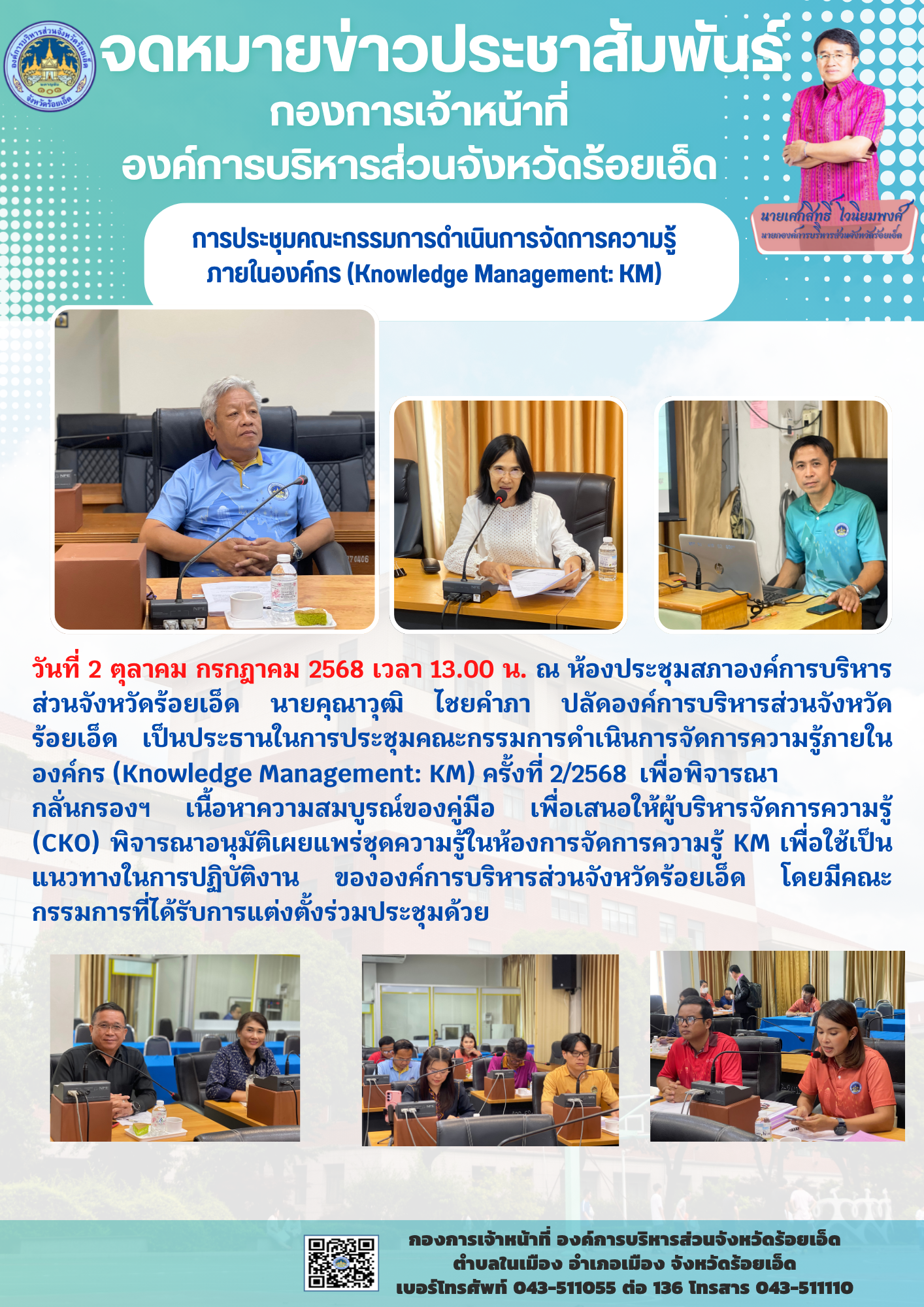 ในวันที่ 27 พฤษภาคม 2568 เวลา 08.00 – 16.30 น. ณ ห้องประชุมองค์การบริหารส่วนจังหวัดร้อยเอ็ด องค์การบ...
