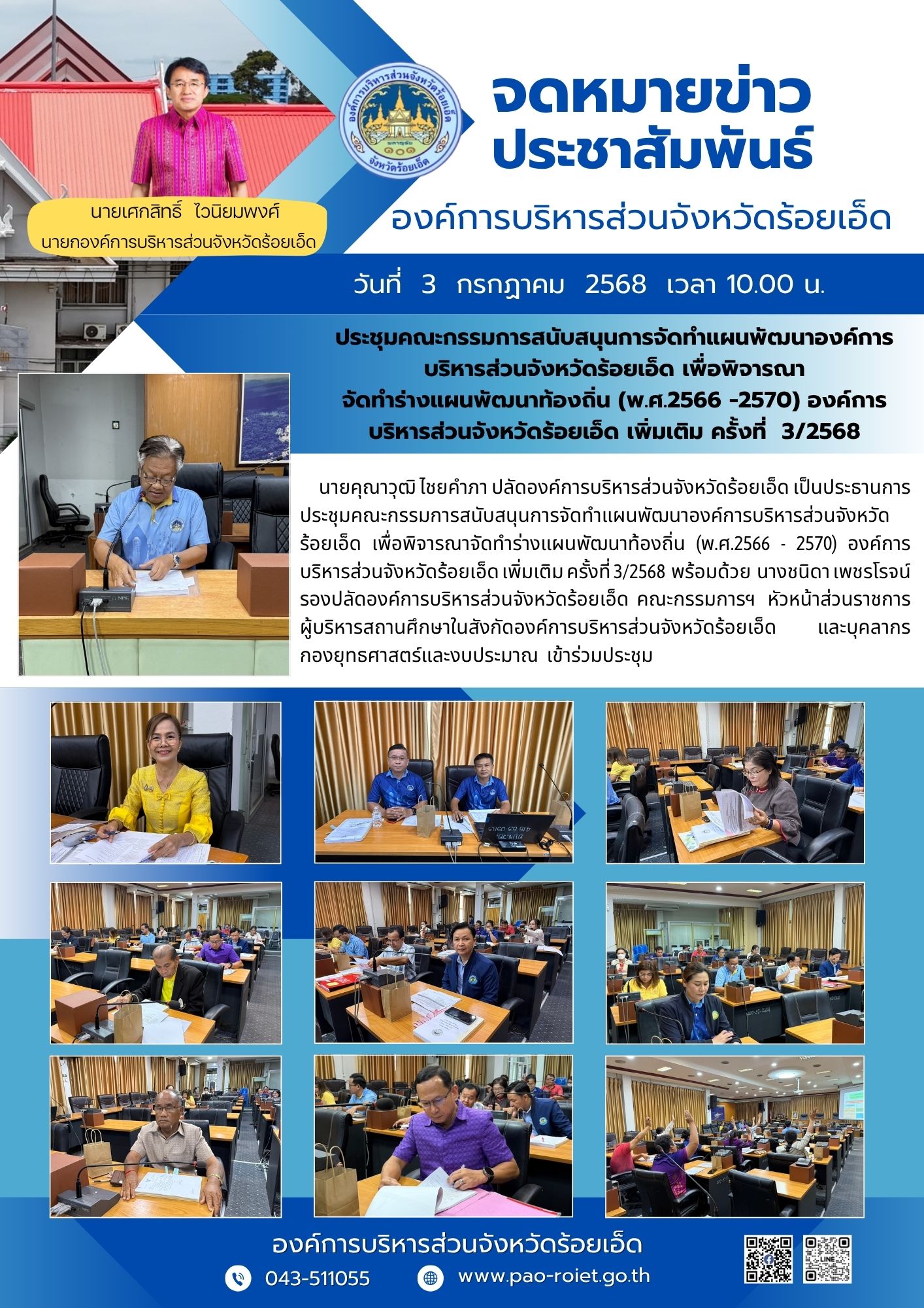ประชุมคณะกรรมการสนับสนุนการจัดทำแผนพัฒนาองค์การบริหารส่วนจังหวัดร้อยเอ็ด