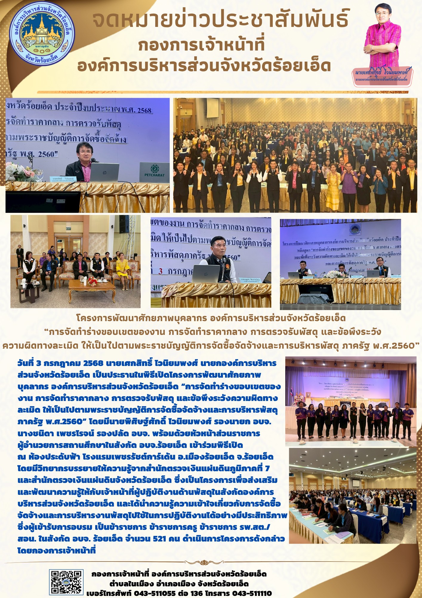 วันที่ 6 - 9 พฤศจิกายน 2568 องค์การบริหารส่วนจังหวัดร้อยเอ็ด ได้ตระหนักและเล็งเห็นความสำคัญในการพัฒน...