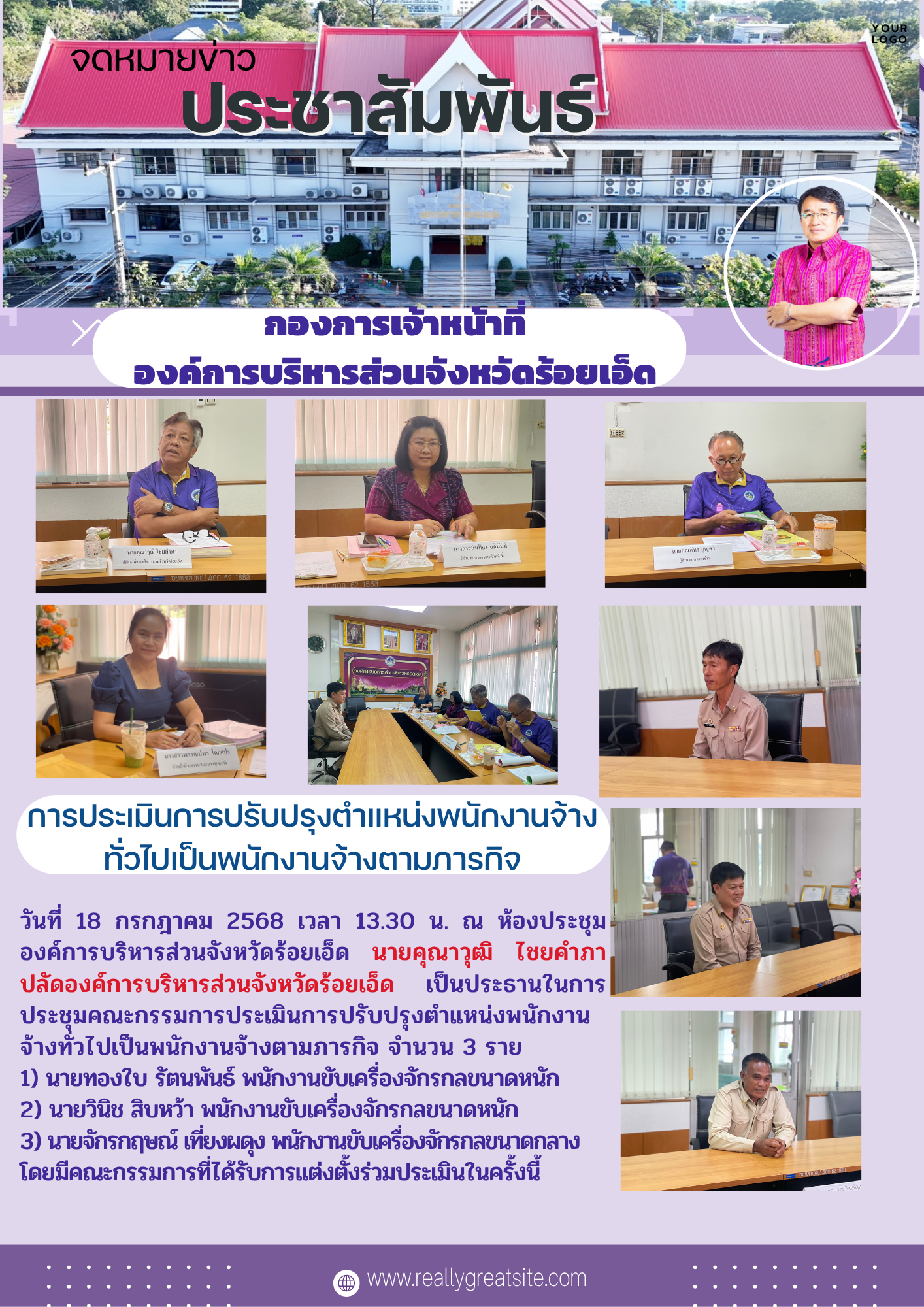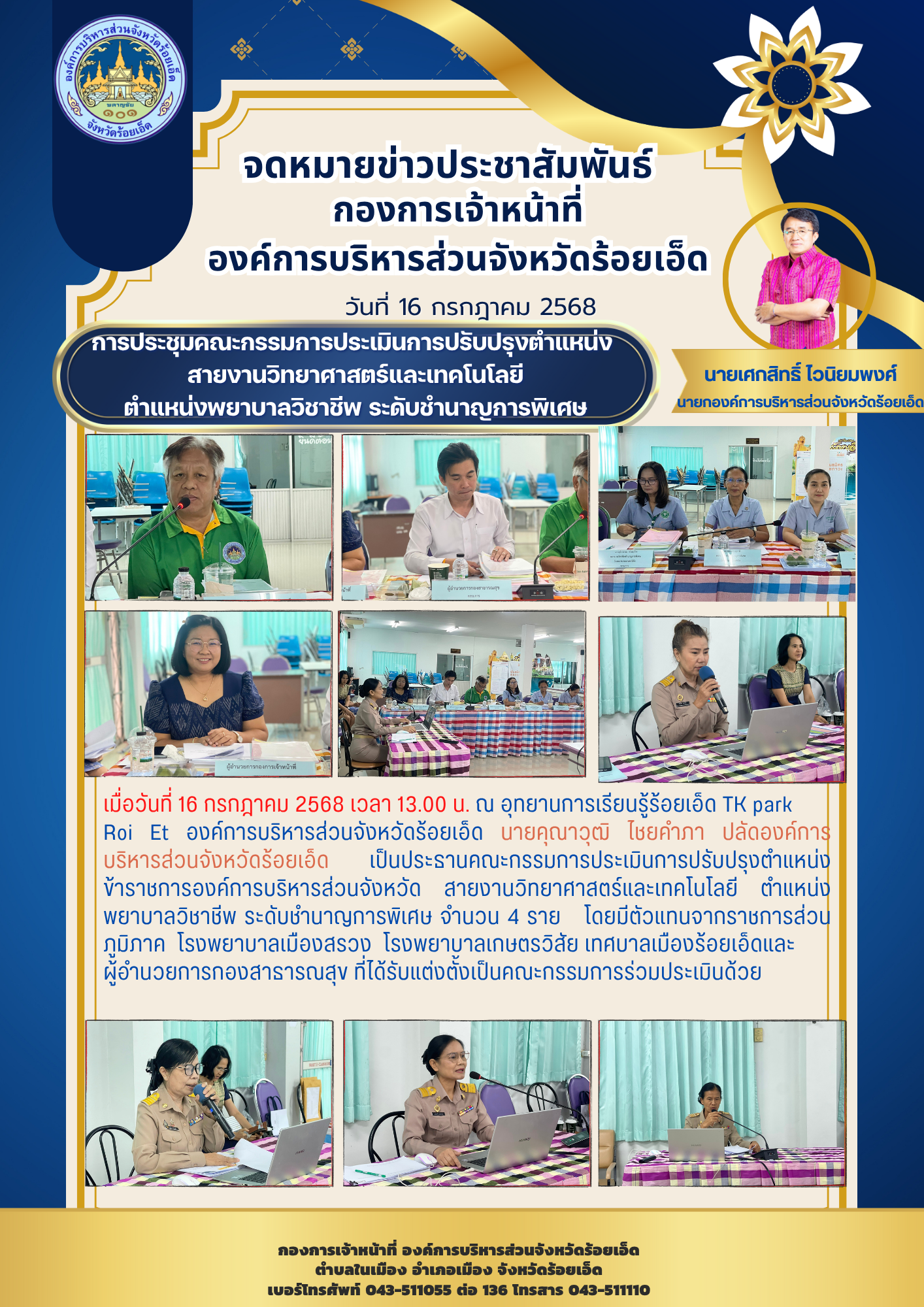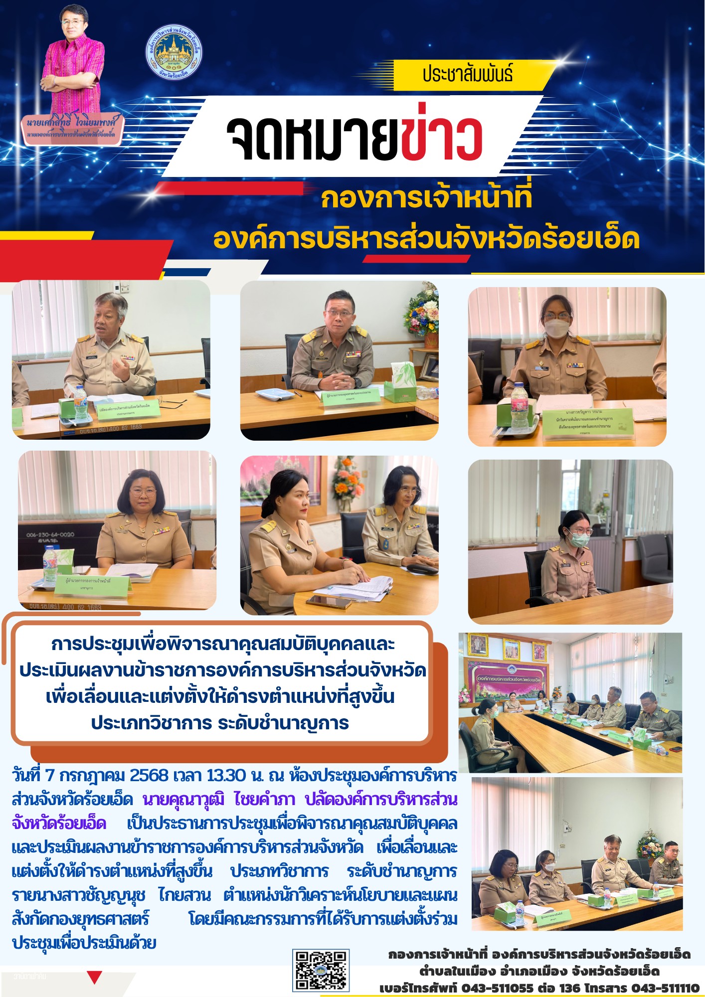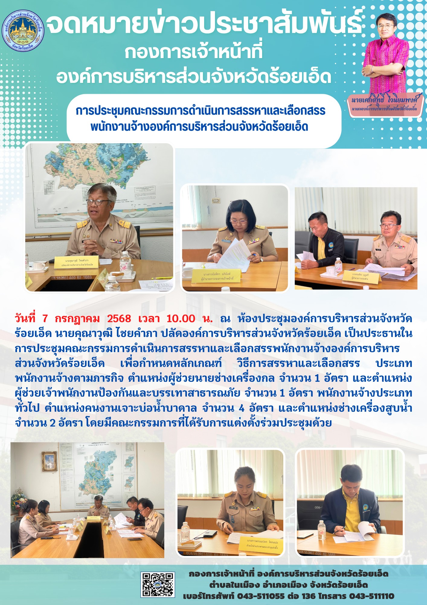 การประชุมคณะกรรมการดำเนินการสรรหาและเลือกสรรพนักงานจ้างองค์การบริหารส่วนจังหวัดร้อยเอ็ด