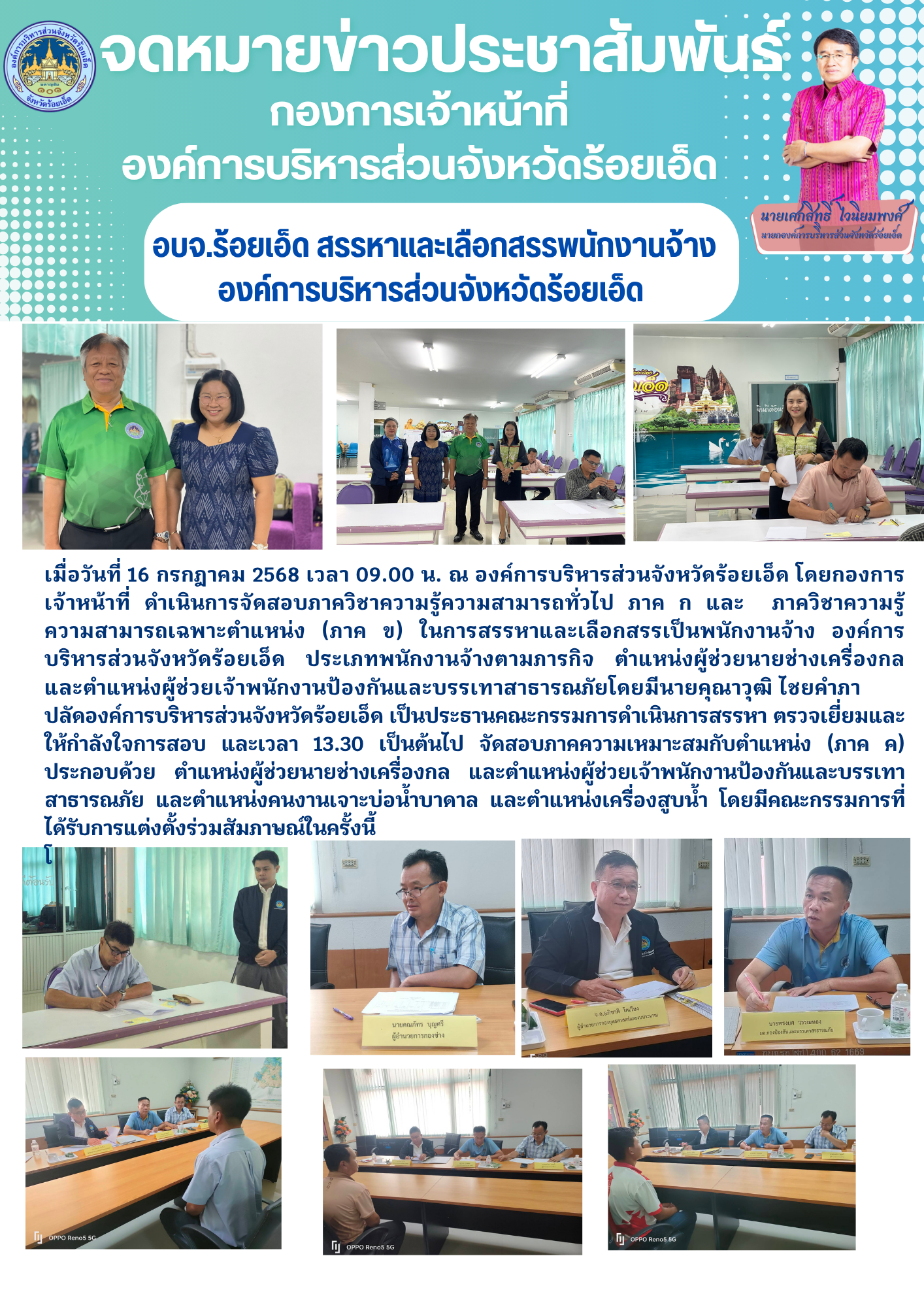 การสรรหาและเลือกสรรพนักงานจ้างองค์การบริหารส่วนจังหวัดร้อยเอ็ด